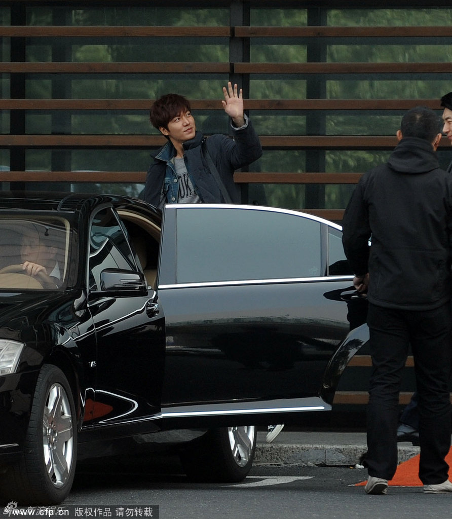 李敏鎬帥氣抵滬 見粉絲親切招手露笑容